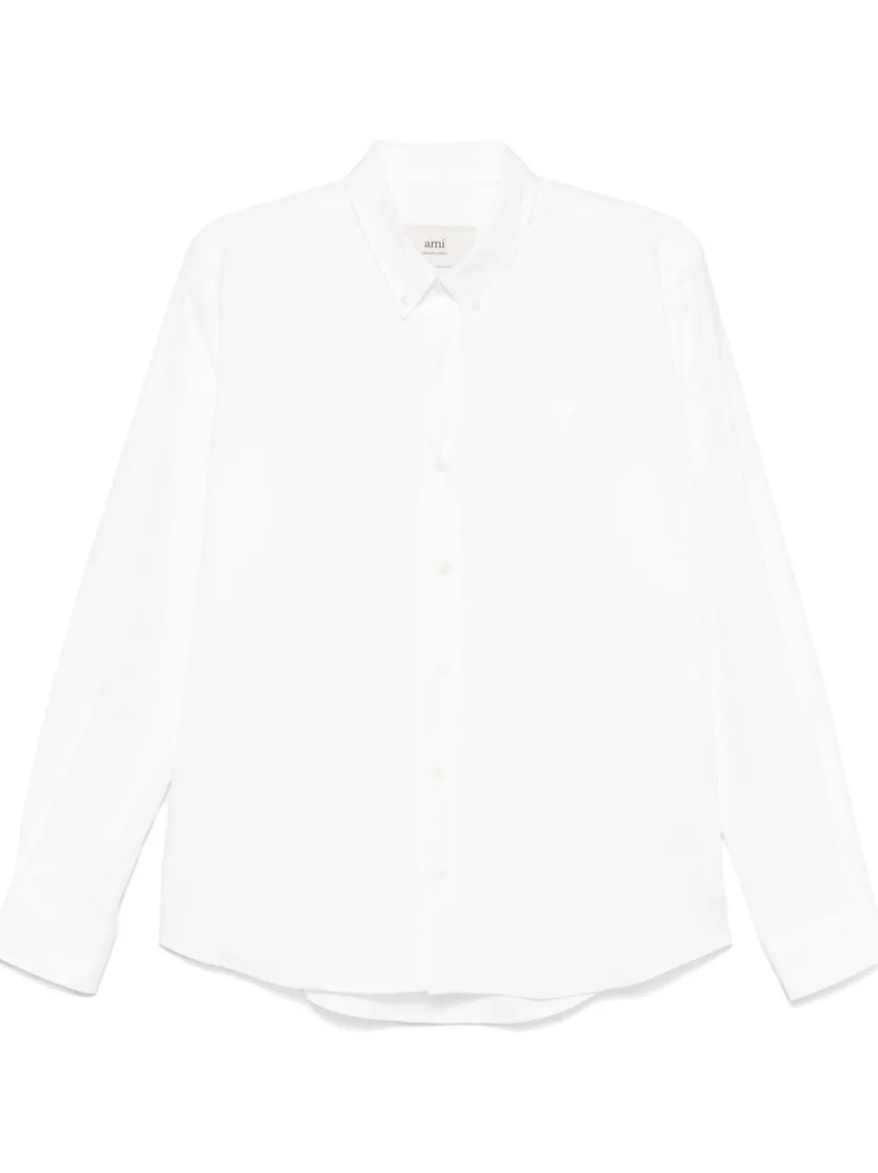 Ami Paris Uomo Camicia Bianco Micro Ricamo Cuore Bianco