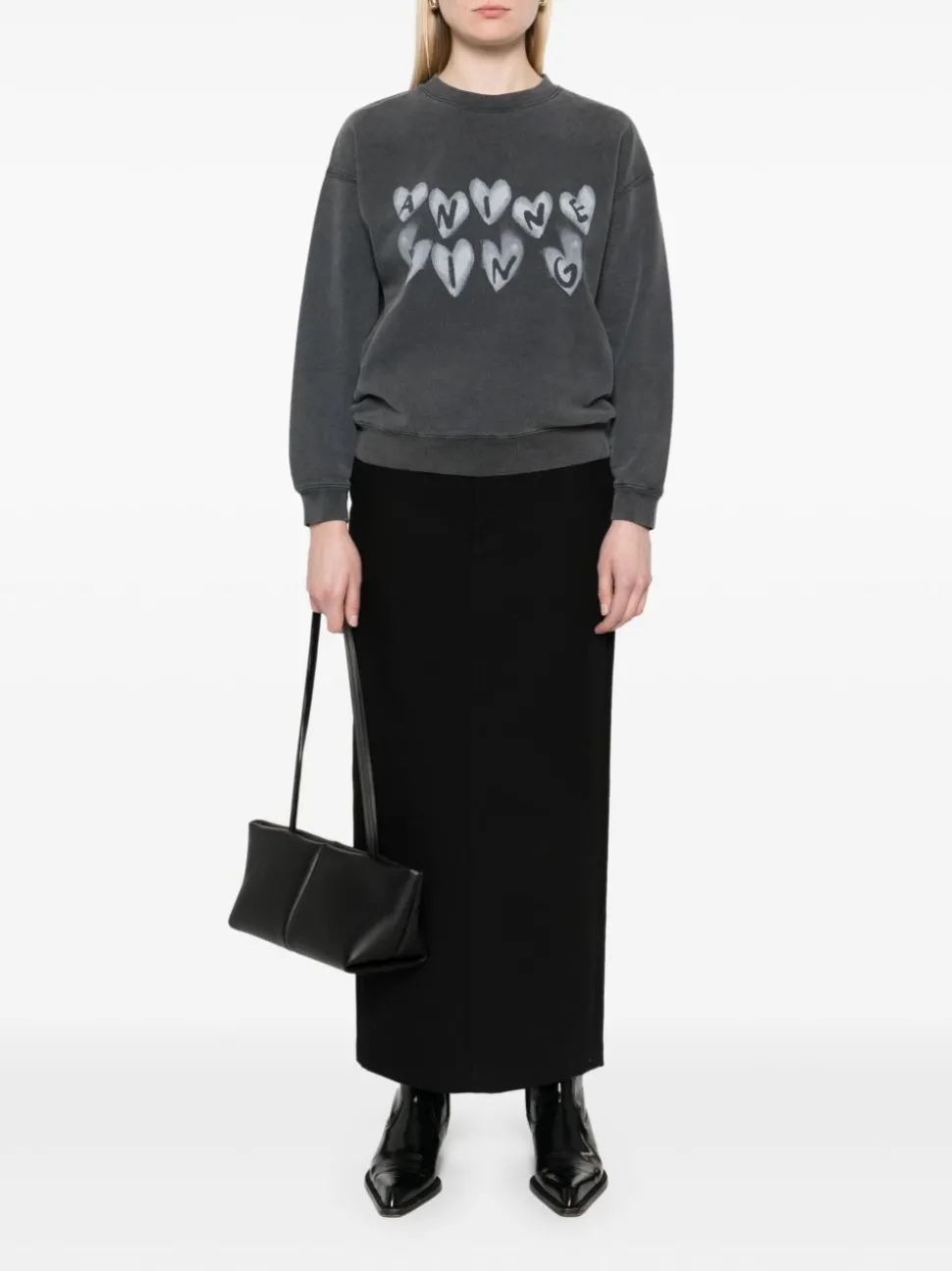 Anine Bing Felpa Nero Donna Logo Cuori