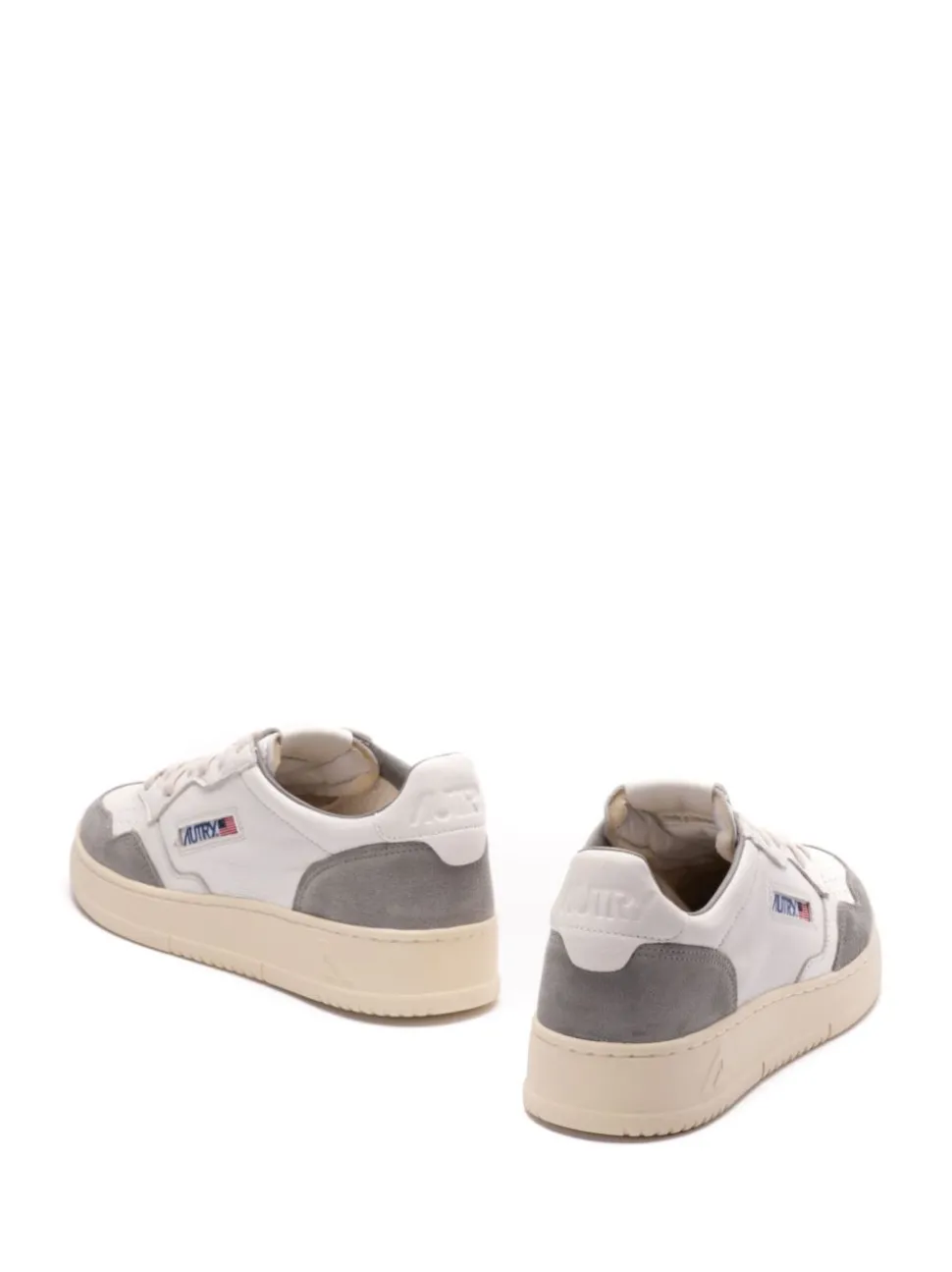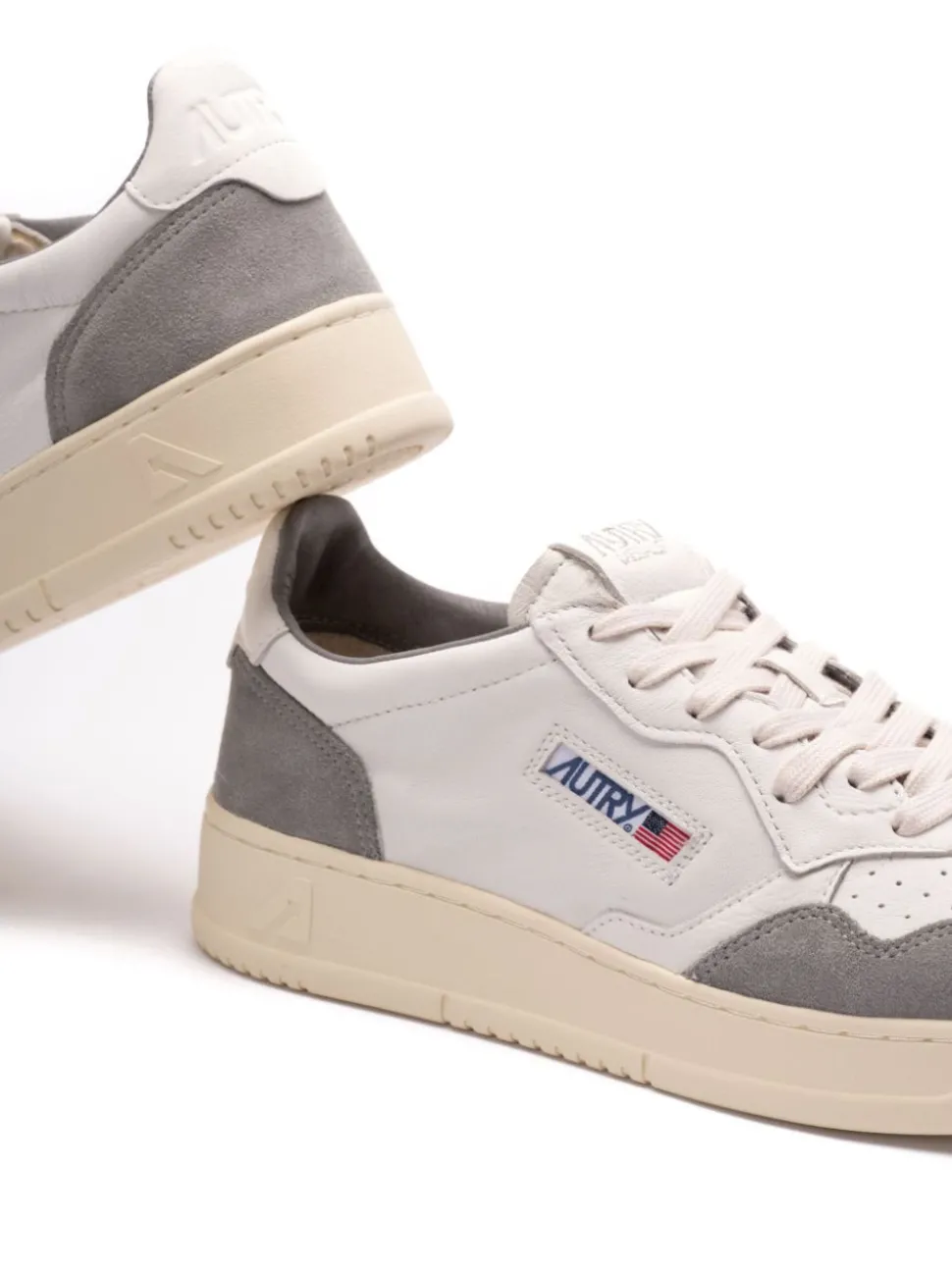 Il modello bianco e grigio si distingue per un design sportivo e versatile, con dettagli in suede e un tallone bianco che donano un tocco di originalità. La punta tonda offre un comfort ottimale e una forma classica, mentre la chiusura con lacci permette una calzata regolabile e sicura. Il logo laterale Autry aggiunge un tocco distintivo che caratterizza queste sneakers.
