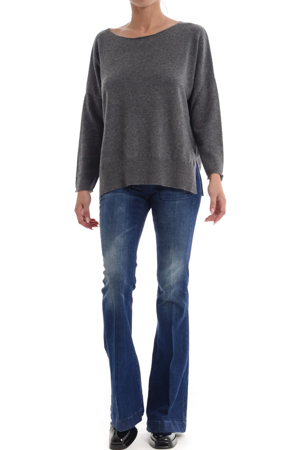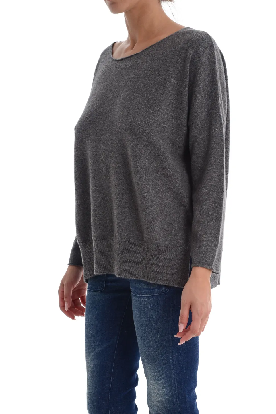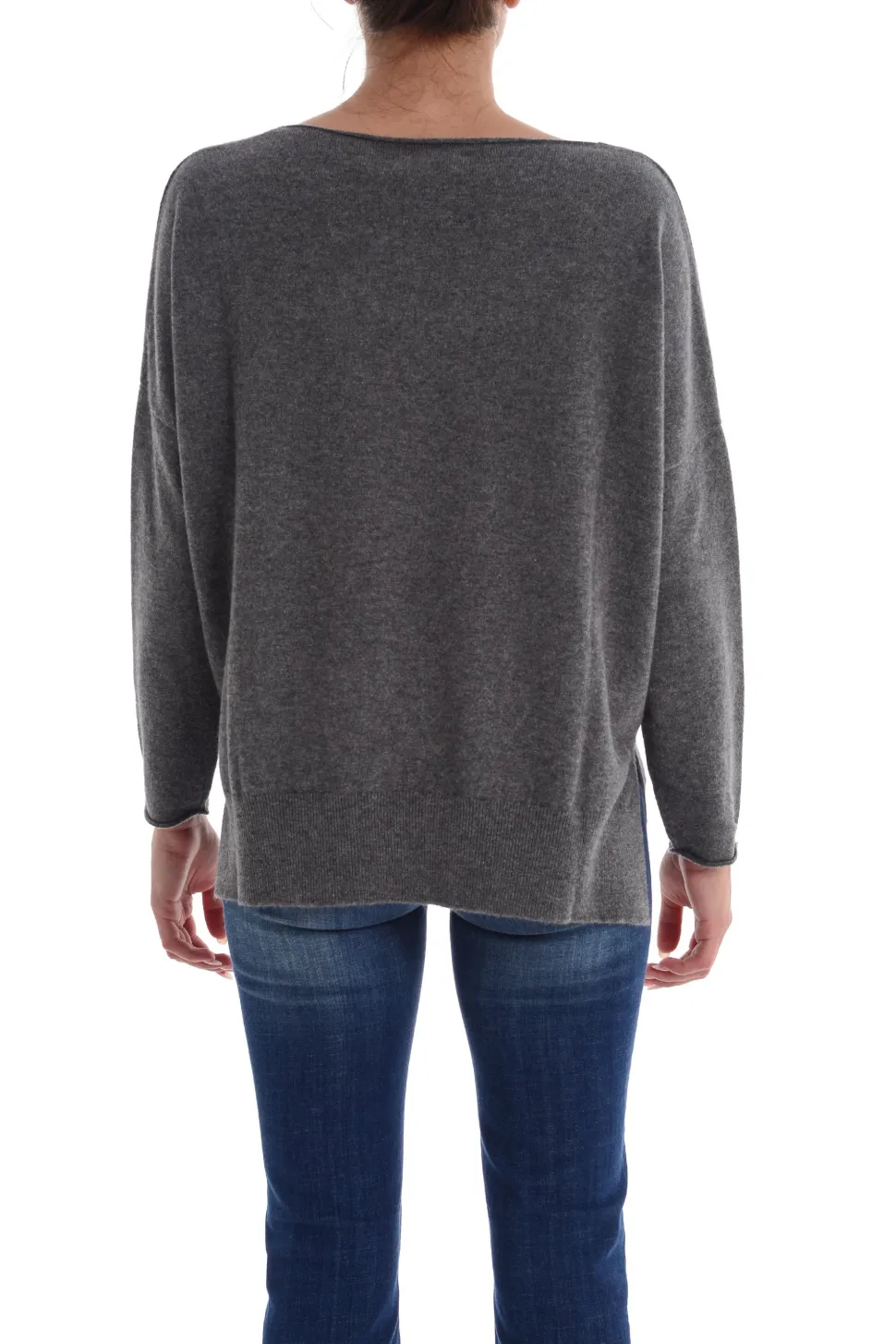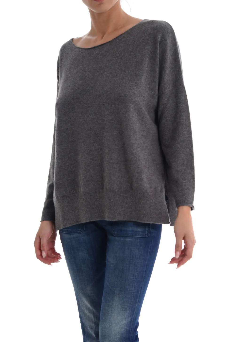 Maglia Grigia a Barchetta con Maniche Lunghe e Spacchi Laterali