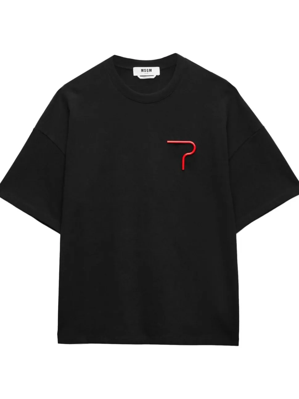 Msgm T-shirt Nero Uomo con Applicazione Rossa