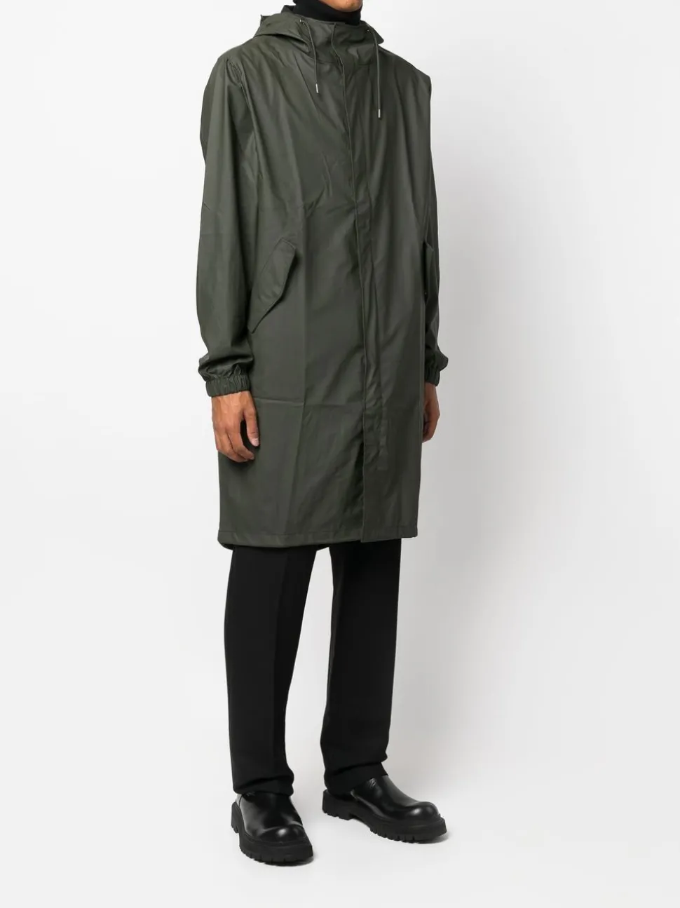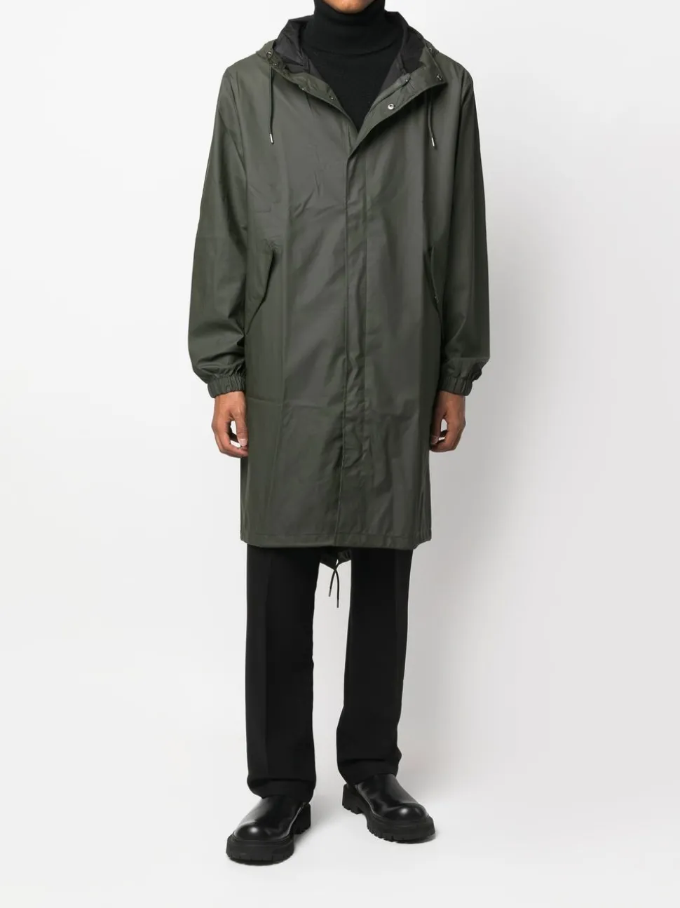 Rains Giubbotto Verde Uomo Impermeabile Lungo Cappuccio